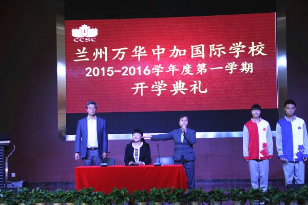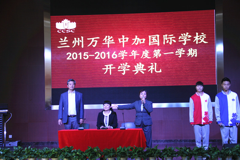 朗朗金秋,丹桂飄香。9月14日上午9時40分,蘭州萬華中加國際學校2015-2016學年第一學期開學典禮在報告廳隆重舉行。執行校長雷曉敏,德育校長范鴻雁,行政校長杜牧拉出席典禮,典禮由七年級兩位學生進行雙語主持。