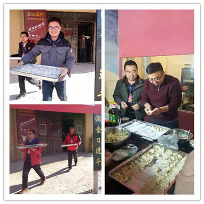 上午九點半,敦煌公司全體員工就在月牙泉小鎮金砂酒坊開始了緊張的籌備工作,拌餡兒、洗餐具,敦煌公司工作人員忙得不亦樂乎。準備工作完成后,大家紛紛拿出自己的看家本事,集體動手,不一會兒,一盤盤皮褶細致、光滑精致的餃子熱氣騰騰的出鍋了。