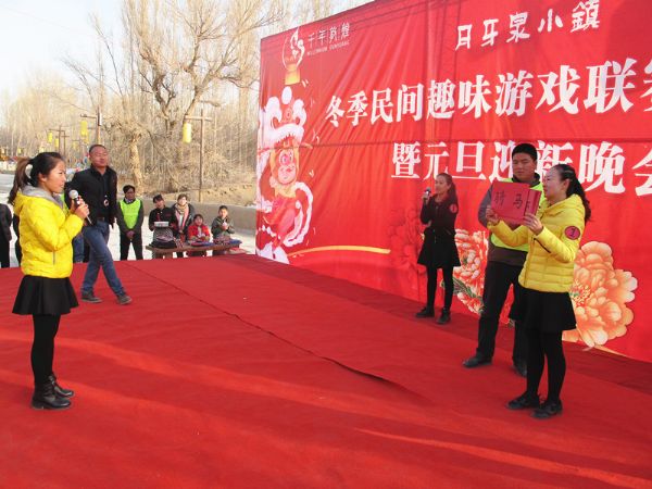 月牙泉小鎮冬季民間趣味游戲聯賽自2015年11月22日開始以來,受到廣大市民、社會團體和游客的喜愛及積極參與。經過一個多月的趣味游戲比賽,共有180多個團隊、500多人次進行角逐,10多個團隊入圍半決賽。1月1日,月牙泉小鎮冬季民間趣味游戲聯賽總決賽在小鎮中心廣場進行最后角逐。