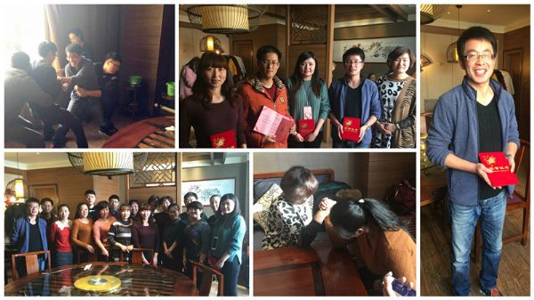 年會(huì)初始,魏總及姚總引領(lǐng)發(fā)言,一起總結(jié)過(guò)去的2015,展望美好的2016,對(duì)慧華大家族全體員工在過(guò)去一年中的付出和奉獻(xiàn)給予了充分的認(rèn)可和贊揚(yáng)。用餐結(jié)束后隨即進(jìn)入頒獎(jiǎng)環(huán)節(jié),兩家公司領(lǐng)導(dǎo)分別為2015年評(píng)功評(píng)獎(jiǎng)得主頒發(fā)了榮譽(yù)證書。首先,由慧華樂(lè)居營(yíng)銷經(jīng)理雷澍、慧華樂(lè)居總經(jīng)理魏敏娟分別為“最佳新人獎(jiǎng)”獲得者劉瑤、“優(yōu)秀員工獎(jiǎng)”獲得者牛桂珍、“最佳管理者獎(jiǎng)”獲得者馬金蘭頒發(fā)了榮譽(yù)證書;接著,慧華榮光總經(jīng)理姚生艷為公司“第四季度用心人”陳雅璇、馬婷玉頒發(fā)了榮譽(yù)證書;市場(chǎng)商務(wù)部經(jīng)理陳雅璇為“優(yōu)秀員工獎(jiǎng)”得主何朋兵及“特殊貢獻(xiàn)獎(jiǎng)”得主張國(guó)梁頒發(fā)榮譽(yù)證書。獲獎(jiǎng)代表劉瑤及何朋兵發(fā)表獲獎(jiǎng)感言后慧華大家族全體員工合影留念,共同定格了這一精彩瞬間。