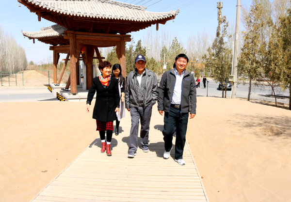4月3日,中華開發金融控股股份有限公司董事長張家祝一行十余人參觀調研千年敦煌•月牙泉小鎮文化旅游項目發展情況。敦煌市副市長宋濟民、敦煌市旅游局局長陳錦業及其他相關部門負責人陪同調研。敦煌千年古城開發有限公司項目總監熊秀霞全程陪同并熱情接待。