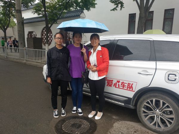 早晨8時,車身貼有“愛心送考車”標識的勁炫、歐藍德車隊,將途中遇到的3名考生分別送往西北中學、蘭州一中和蘭州三十三中,為參考學生加油鼓勁。