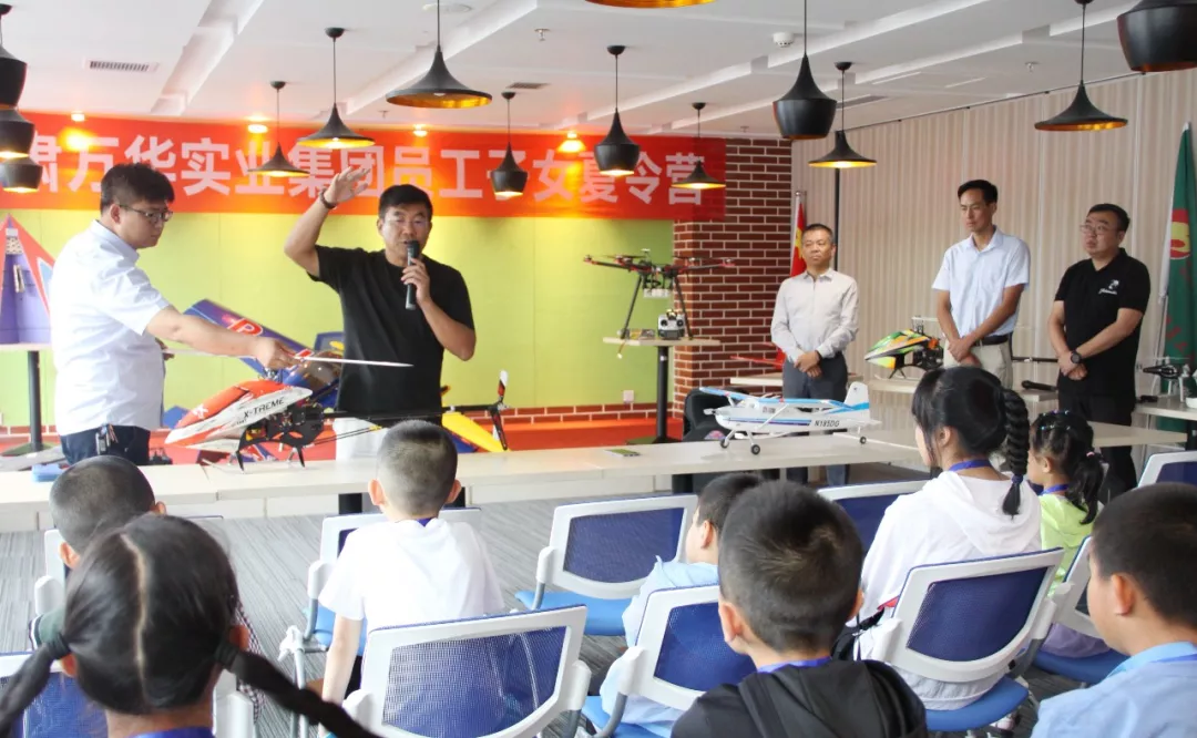 牛新民首先向在場的小朋友們問好。他說:“非常開心看到這么多小朋友在炎熱的夏季來到萬華大家庭參加夏令營,看到你們也讓我想到我年幼的時光,也回想起我是如何懷著童年的憧憬一步步成長,不斷磨練進取,擔起社會的責任。希望大家今天能把航空基本知識帶回家,小朋友之間彼此認識、增加了解,在今后的學習和生活中留下一筆美好的回憶,也希望小朋友們能夠珍惜來之不易的夏令營的美好時光,學到你們喜歡的知識和有用的本領。”