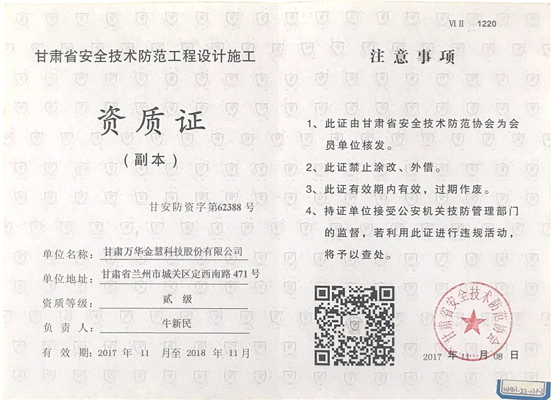甘肅省安全技術防范協會 甘肅省安全技術防范工程設計施工資質證(副本)