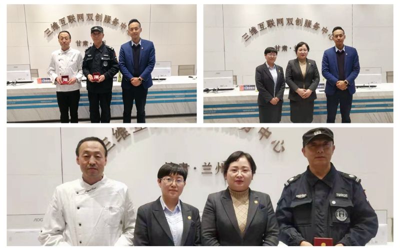 甘肅雙創常務副總經理孫飛虎為新晉司齡5年和10年老員工授勛并合影
