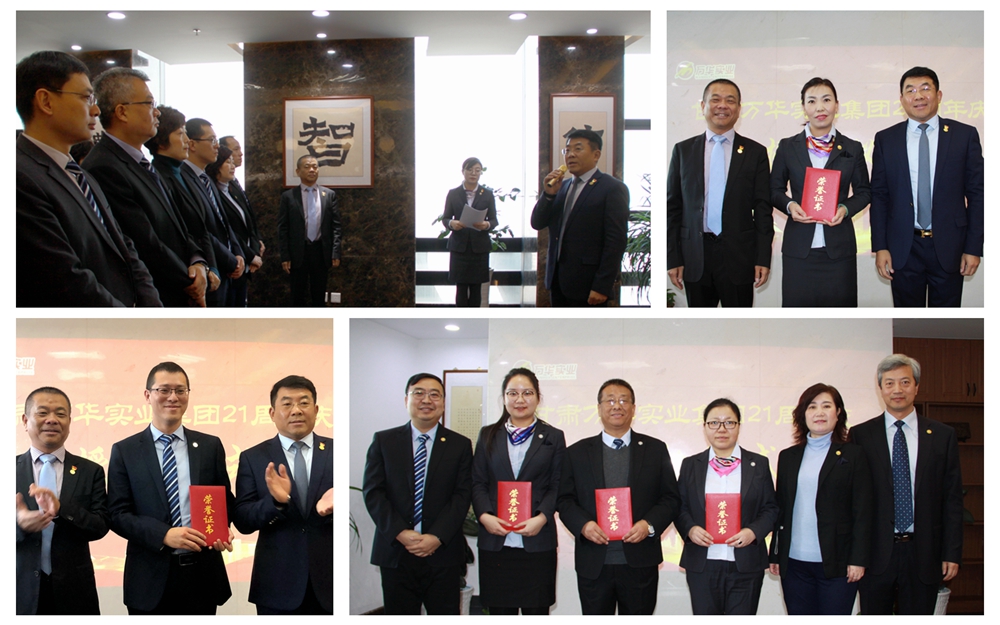 上午10時整,甘肅萬華實業集團21周年紀念活動在溫馨而充滿儀式感的氛圍中開始。董事長牛新民、總經理牛新偉與集團及下屬單位部分高管、集團總部新晉老員工齊聚一堂,共同見證與慶祝珍貴時刻。