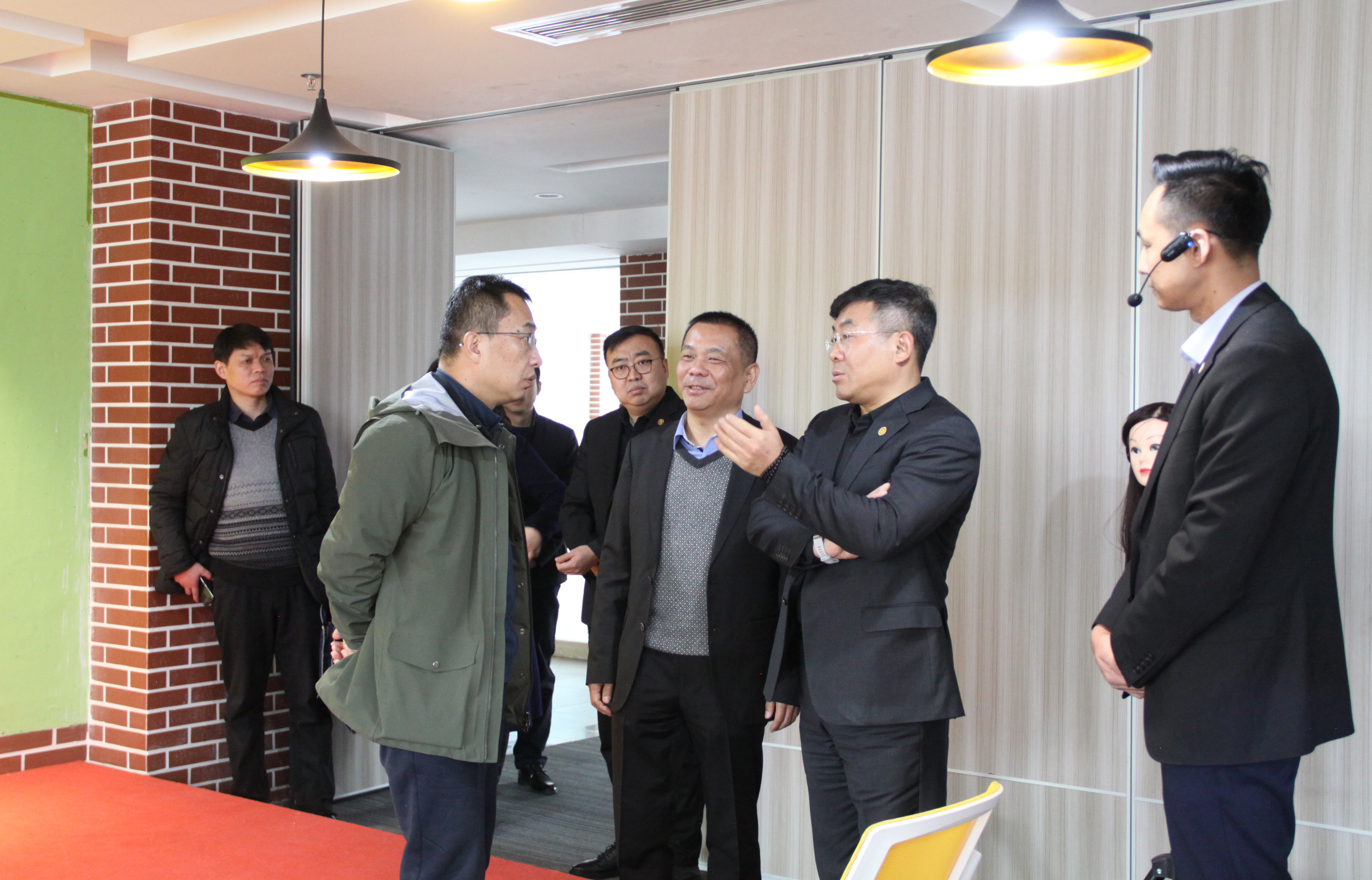張進一行參觀了甘肅互聯網創新創業大廈二樓路演大廳,聽取了萬華集團和甘肅萬華職業培訓學校的發展概況和就業創業工作成果匯報,通過實地走訪萬華職校教學區、多功能廳和創業大廳,了解萬華集團關于接受退役軍人、幫扶退役軍人就業創業等情況。