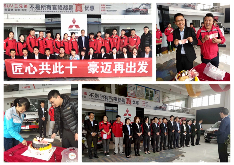 生日歌響起,白鵬飛帶著對公司的美好祝福、對未來的期許點燃生日蠟燭,映著溫暖的燭光,為天水勝華許下一份美好的愿望。侯東靖與廣汽三菱培訓老師丁元博共同切開蛋糕,將喜慶和祝福分享給在場的每一個人。