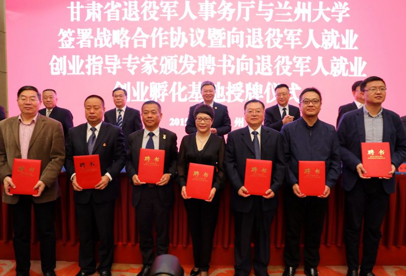 儀式現場,甘肅省退役軍人事務廳為首批33名就業創業指導專家頒發《聘書》、為首批5個省級退役軍人就業創業孵化基地授牌,希望幫助更多退役軍人積極投身“大眾創業,萬眾創新”的實踐,實現自身價值。