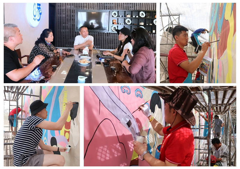 15時,西美研學團實地壁畫創作進入最后攻堅階段。細線條勾勒、小范圍涂繪、人物面部色彩調配等創作,無不展現學員們嚴謹細心的態度。為了能按時、高質量完成創作,學員們甚至加班加點至凌晨2點。他們挺拔的背影、手中揮動的畫筆,像是傳統文化傳承之燈,在月牙泉小鎮的夜幕下熠熠生輝。