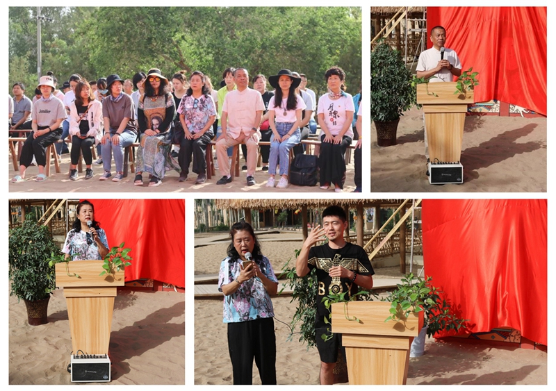 中國華夏文化遺產基金會千年敦煌專項基金管委會主任、敦煌千年古城文化發展有限公司董事長牛新偉,千年敦煌專項基金管委會辦公室主任陳永華,西安美術學院特殊教育藝術學院書記李玉健、老師劉肖,北京數聚智連科技股份有限公司執行創意總監李惠靜、藝術指導朱珠,敦煌千年古城文化發展有限公司項目總監熊秀霞、經營管理部部長郭龍等領導及嘉賓出席結營儀式,與來自西安美術學院特殊教育藝術學院的優秀學員、研學活動工作人員、月牙泉小鎮商戶代表共同見證這一激動人心的時刻。