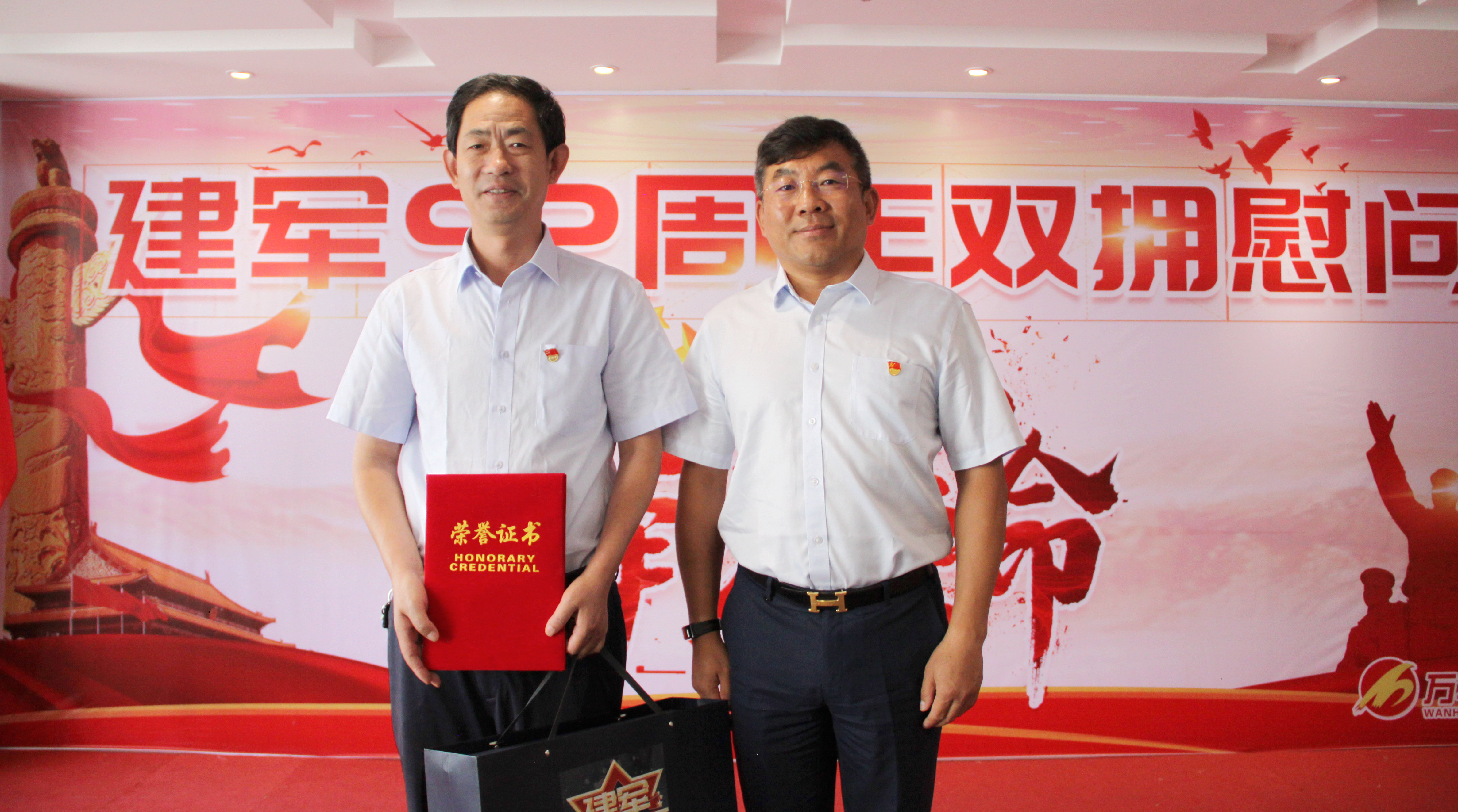 7月30日上午,為迎接八一建軍節的到來,萬華集團黨支部開展了“不忘初心、牢記使命”雙擁慰問主題黨日活動。萬華集團黨支部書記、董事長牛新民,總經理牛新偉,監事會主席魏敏娟,集團副總經理兼董事會辦公室主任宿曉中,集團副總經理兼開發部總經理杜牧拉,集團財務總監王鑫,甘肅大禹九洲測繪地理信息有限公司總經理岳増琪、副總經理楊晉強,甘肅萬華金慧科技股份有限公司董事會秘書王鑫出席活動,向現場23名退役軍人和軍人家屬送去節日的關懷和慰問,紀念中國人民解放軍建軍92周年。