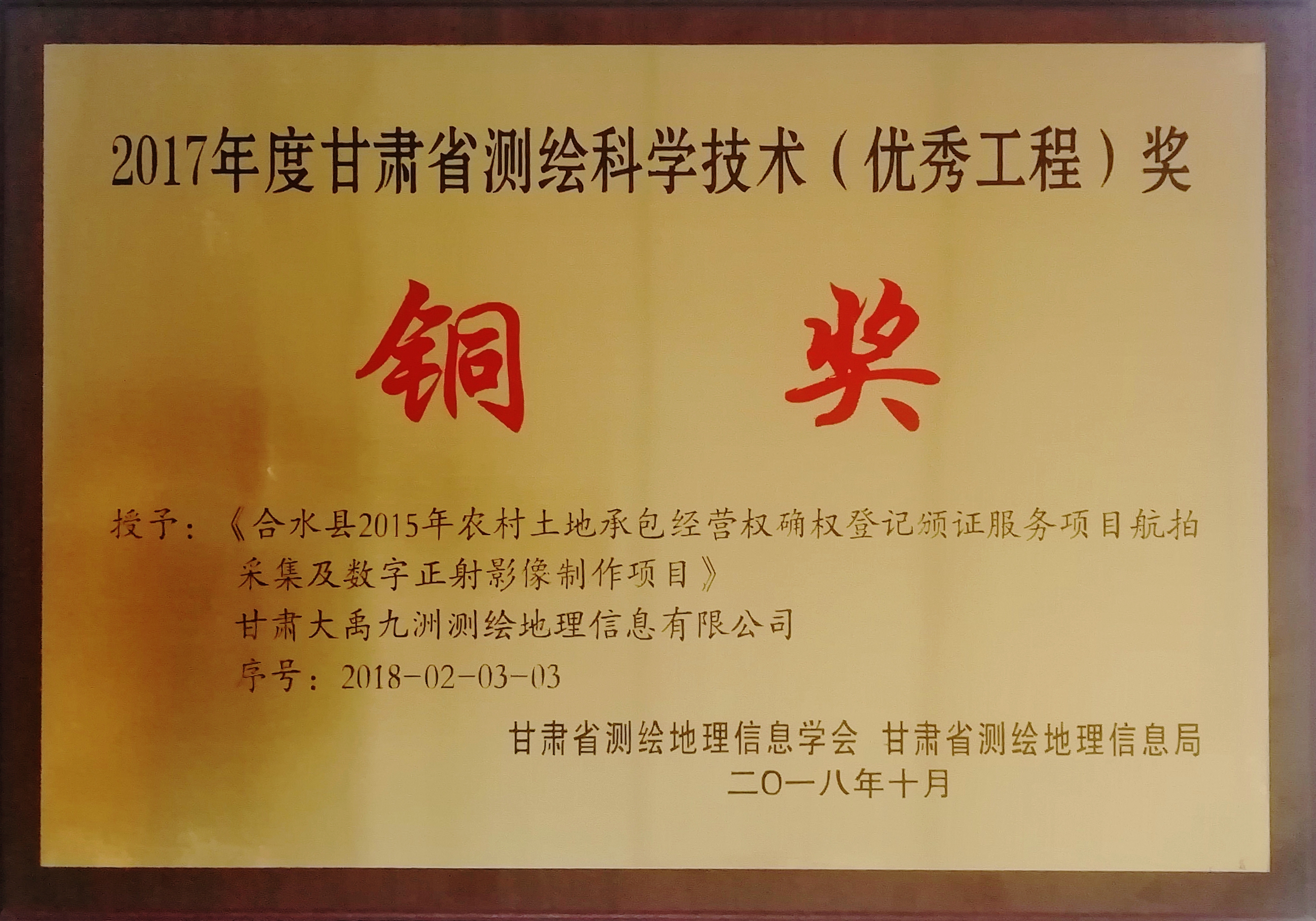 2017年度甘肅省測繪科學技術(優秀工程)獎