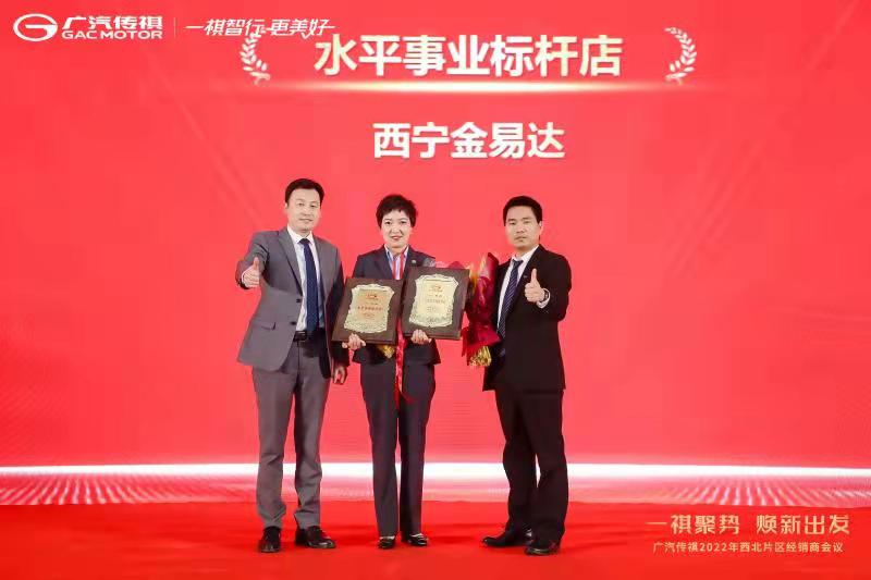 2月27日14時,廣汽傳祺西北片區經銷商會議在西安舉行,青海金易達汽車銷售服務公司榮獲2021年度廣汽租賃全國優秀店等七項大獎。甘肅萬華實業集團董事長牛新民,青海金易達汽車銷售服務有限公司總經理趙艷麗、銷售經理馬智淵、售后服務經理包明慶、市場經理薛瑩瑩參加會議。