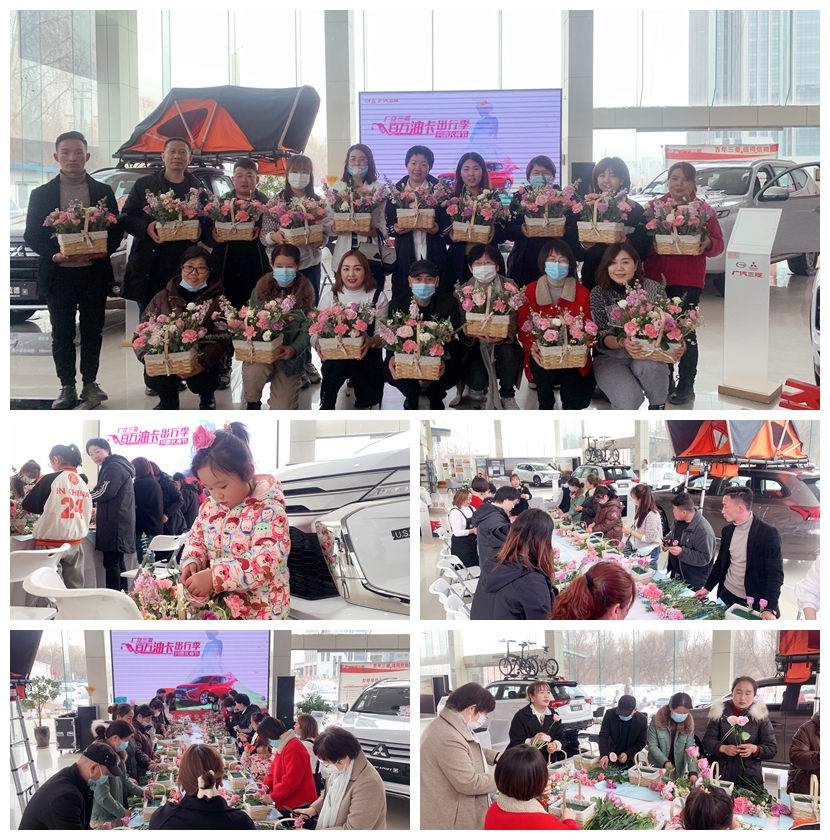 春風(fēng)拂面,笑靨如花。3月5日,甘肅萬(wàn)華汽車銷售有限公司展廳內(nèi)色彩絢麗,花香四溢,“廣汽三菱百萬(wàn)油卡出行季——約惠女神節(jié)”的保客活動(dòng)正在進(jìn)行。十余位萬(wàn)華女車主歡聚一堂,在專業(yè)老師的指導(dǎo)下用玫瑰、洋甘菊、小雛菊等花材,經(jīng)過(guò)巧妙構(gòu)思,將自己的創(chuàng)意轉(zhuǎn)化為一件件高低錯(cuò)落、疏密有致的插花藝術(shù)品。
