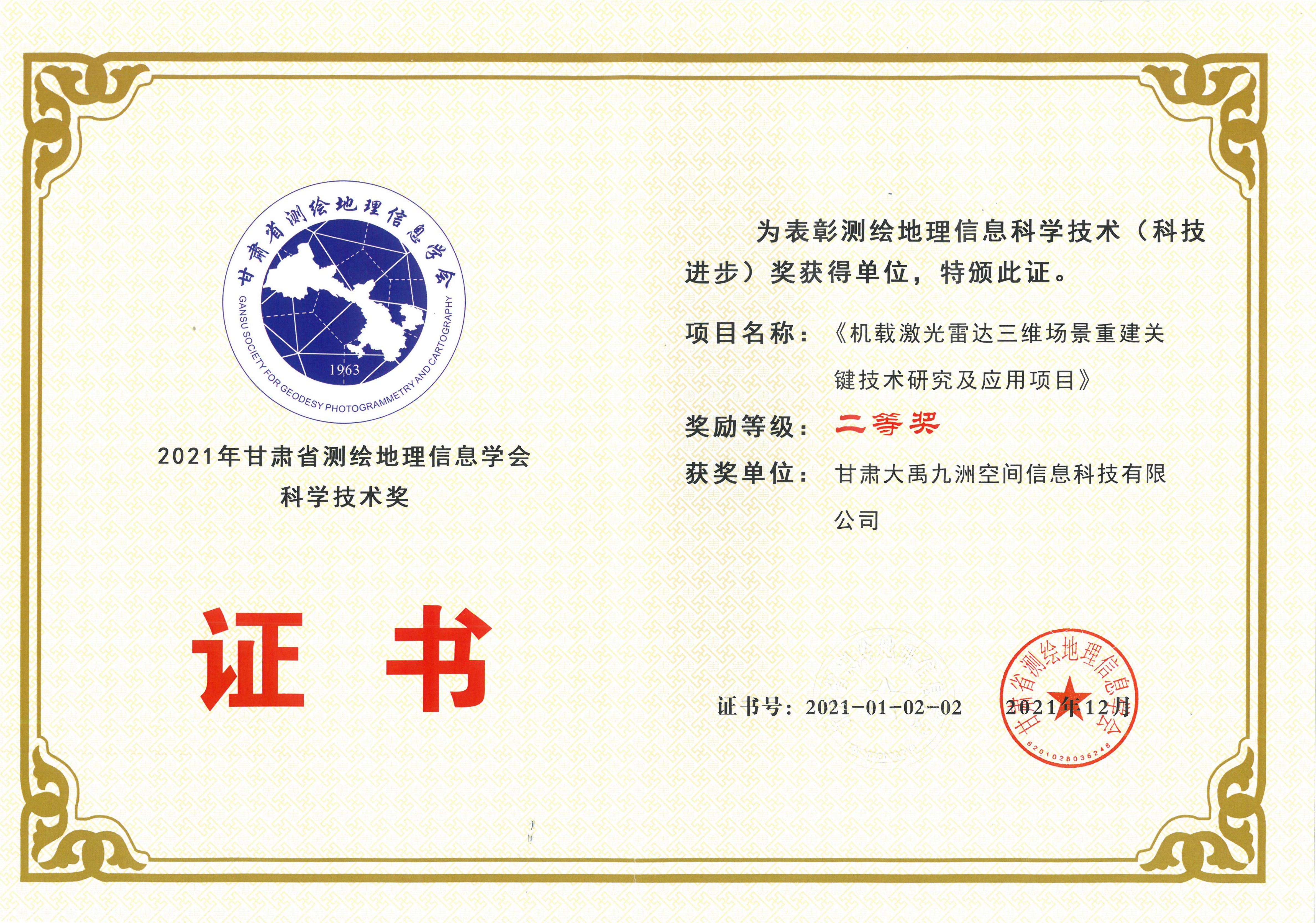 2021年甘肅省測繪地理信息學會科學技術獎二等獎